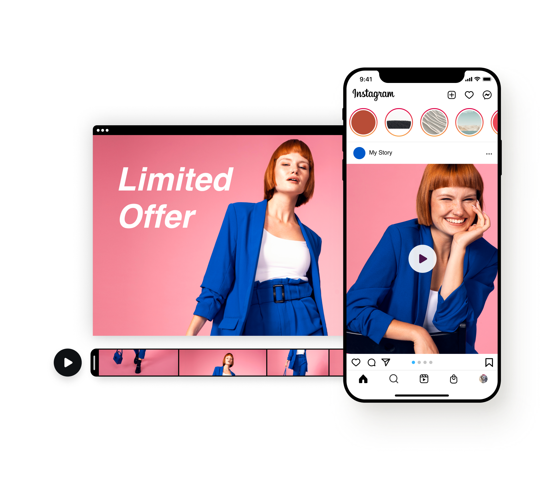 Instagram is the perfect place to promote a sale, special offer, or discount code to followers. With Instagram commercials, you can drive awareness and increase exposure through visuals. Pick any of our specially designed, customizable Instagram commercial templates, and get started with our commercial video maker.
