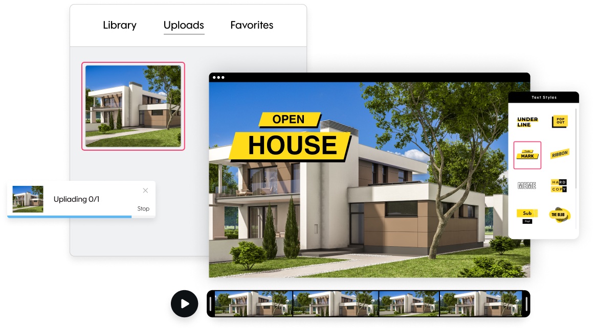 Once you’ve answered these questions, it’s time to get started on your video. Log in to Promo.com and choose a template according to your video marketing needs. Upload your own video of the property you’re showing, or of yourself if you’d like. Or choose from our collection of video templates or clips.