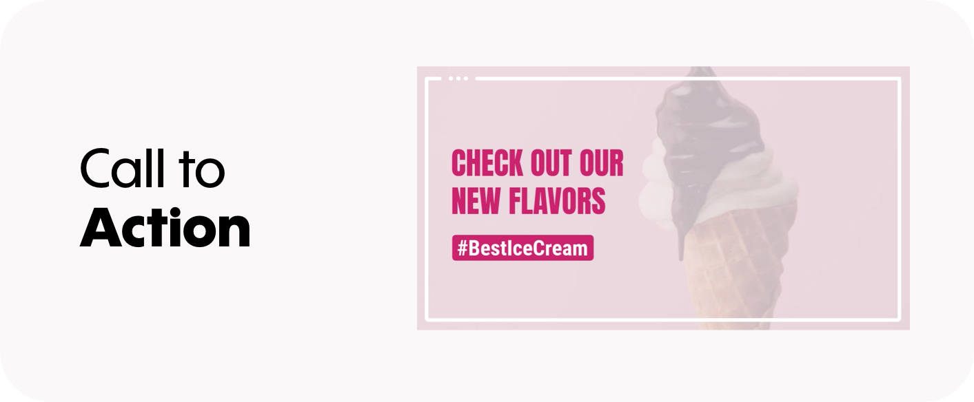 The “Call to Action” or “CTA” directs the viewer to take the next step. Common CTA’s include: Download Now, Visit Our Store, Sign Up Now, etc.