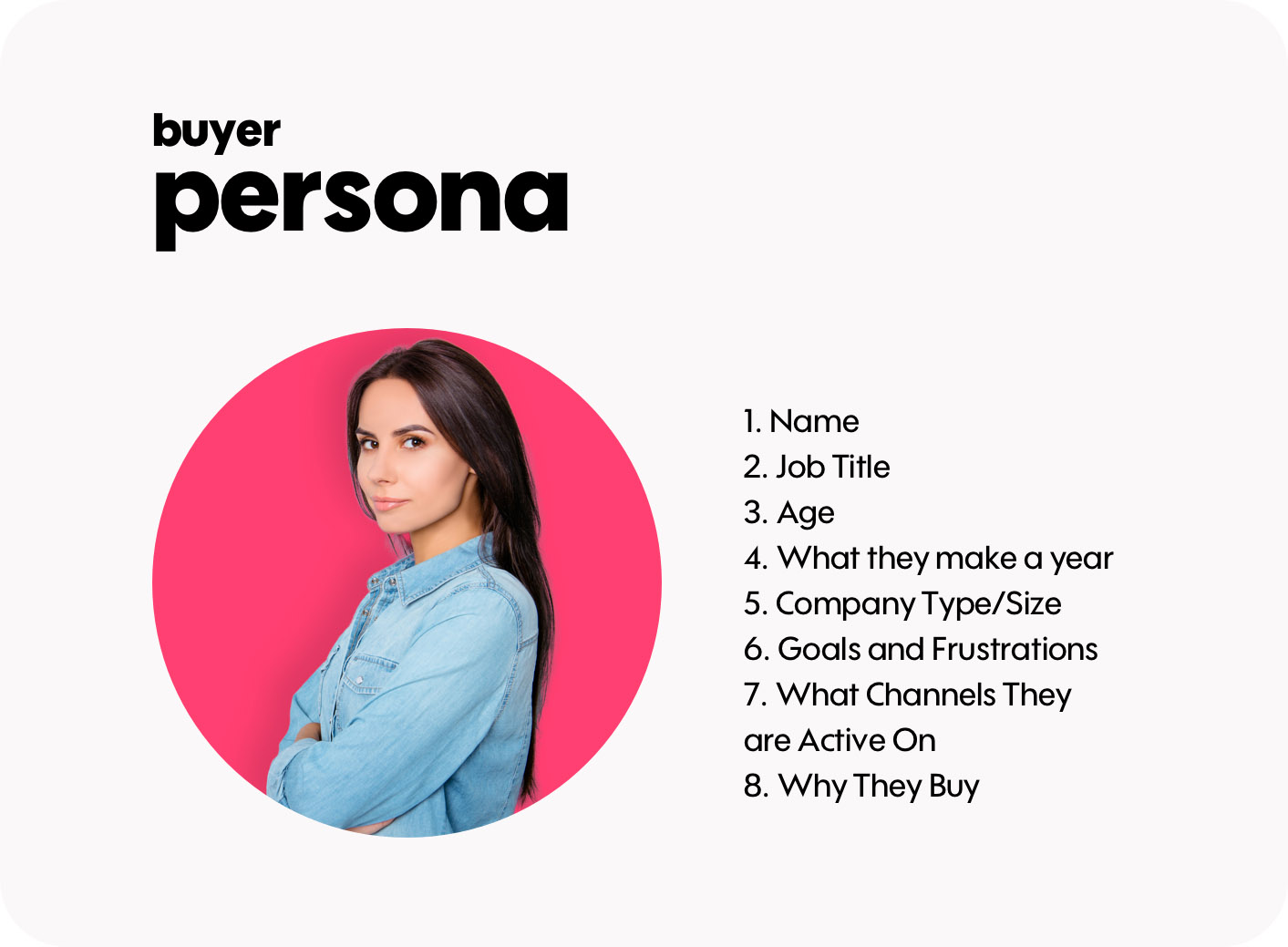 Look at your current customers/clients and use them to help inform your fictional personas. You can even use the name of a well-known customer to make it a little more real. Or, you can go celebrity style and name the persona Apple – it’s up to you.