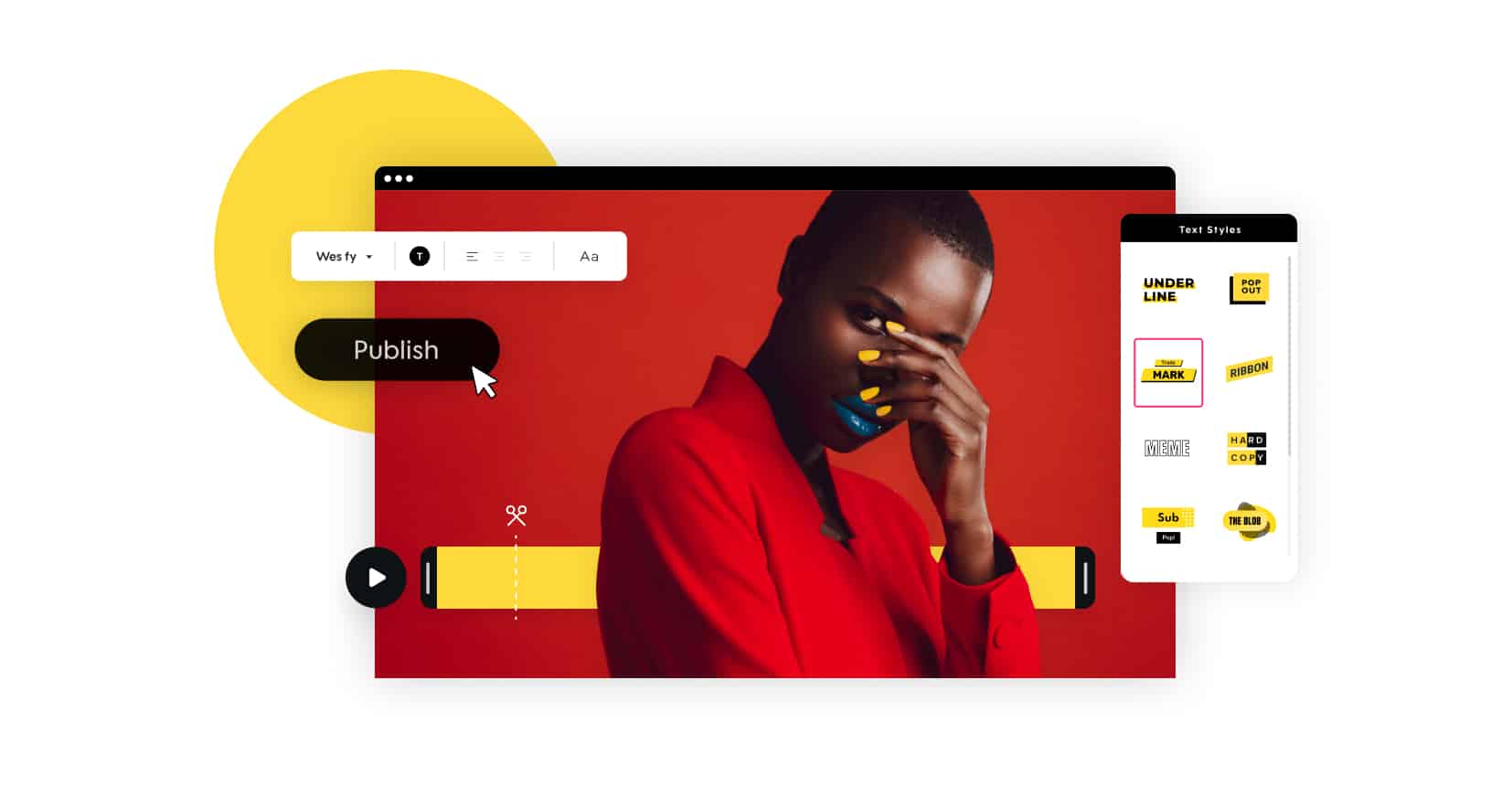 After you trim your video, you can easily add text to any frame. Choose from multiple designed text styles, hundreds of fonts, and colors to make your video stand out.